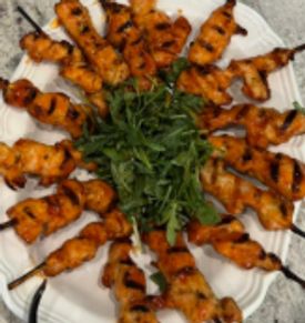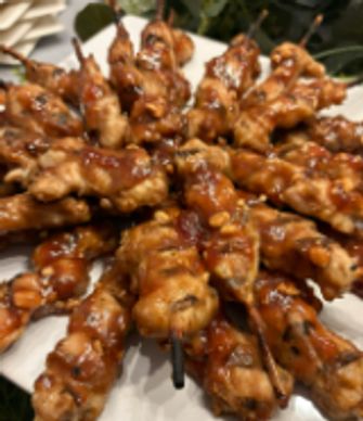 How to Build: A fried chicken nugget with a piece of sweet waffle skewered and drizzled with maple syrup. Allergies: Contains gluten