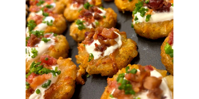 How to Build: A penny-sized amount of sour cream, with a pinch of Bacon Bits and Scallions on top