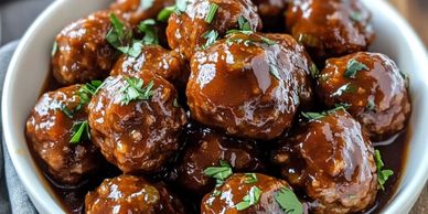 Garnish: Strawberry Jalapeno jelly drizzle with crushed peanuts, a few whole strawberries for color